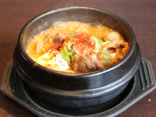 メニューは「ホルモン」(539円)、「レバー」(539円)など「ナンコツ」(649円)など豚ホルモン15種類、「カルビ」(1,309円)、「ロース」(1,309円)、「タン」(1,419円)な牛9種類、「鶏モモ」(649円)など。店名の看板「できたて生キムチ」(649円)、「ガツ刺し」(649円)、「チヂミ」(979円~)、「チゲ」(979円~)なども。
