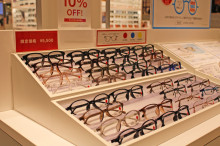 商品はメガネ・サングラスなど約1,200本。サングラスは近年注力しているカテゴリーで、人気ブランドとのコラボ商品を含む約150種類をそろえた。価格はメガネ一式(フレーム、レンズ)5,500円~、サングラス5,500円~。