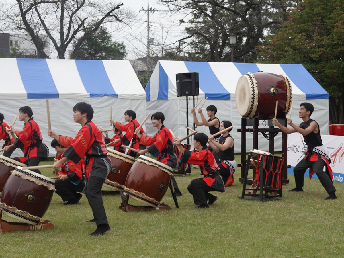 「群馬県立高崎高等学校和太鼓部ー漢組ー」は毎回人気のステージ 高崎「どっと楽市」81店舗、おおむね3割引 コシヒカリ新米も  <記事に戻る>