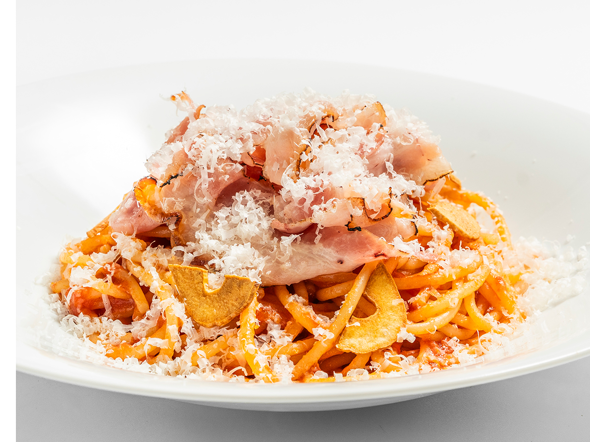 初登場「レゴリス」の「ふわふわベーコンのコクうまアマトリチャーナ」  高崎「キングオブパスタ」初出場3店、優勝店4店 全18店一同に  <記事に戻る>