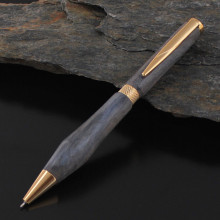 三友健一さん(ちいさなクジラ木工房、前橋市)の「ボールペン」(7,800円)材はメープルに青色の樹脂を含侵させた木材を使用 群馬「ウッドクラフト」展 県内の木工作家、大型作品含む展示販売  <記事に戻る>