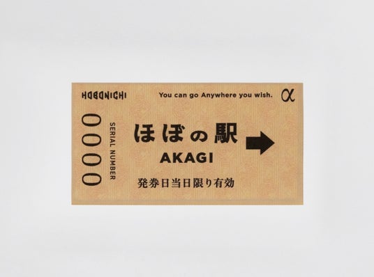 もともと駅だった建物を、ほぼ日が運営するので「ほぼの駅 AKAGI」。旧駅舎の骨格や外観を残しつつ、駅らしさを意識しながらリニューアルしました。施設のロゴも切符をモチーフにしたもの。グランドオープンは、2026年春の予定ですが、2025年11月1日より「α[アルファ]オープン」という呼び方で試験開業をはじめます。赤城山に来たら気軽に立ち寄れて、絶景を見ながらのんびりでき、この場所ならではのおいしいものをたのしめて、ほぼ日のアイテムも買える場所です。ぜひお立ち寄りください。オープン記念企画として、11月1日13時30分より、先着1101名様に、特製の記念切符を差し上げます。