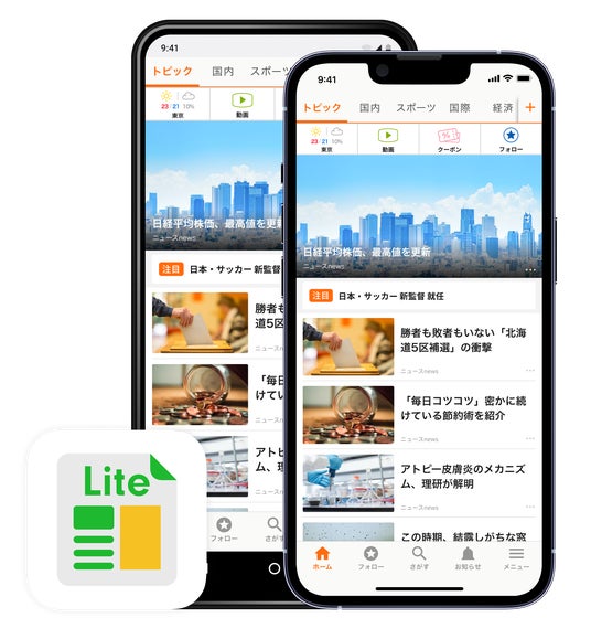ニュースライトは、かんたん操作で話題のニュースがチェックできる無料のアプリです。独自の情報解析・配信技術を用いて、提携メディアから配信されるニュースの中から自動的に選定した情報をユーザーに届けます。