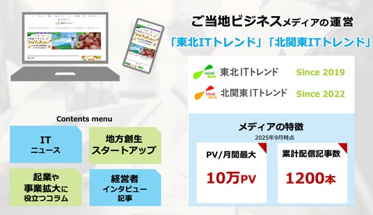 ご当地ビジネスメディア「東北ITトレンド」「北関東ITトレンド」の運営をはじめとする広報・PRアウトソーシング事業。