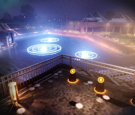1. つながりの庭 (TOUCH GARDEN)生命の芽吹きから次の循環へと向かう庭園。あなたの動きが光と音の共鳴を生み出します。中央のシンボルオブジェの近くで、モニュメントに手をかざしてみてください。