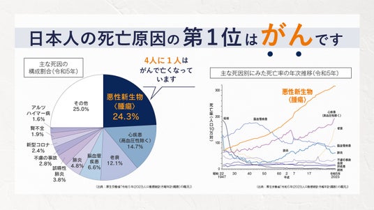日本ではがんは長年にわたり死因の第1位であり、早期発見・早期治療の重要性が広く認識されています。一方で、忙しさや受診機会の少なさから定期的に検査を受けることが難しい方も少なくありません。当社検査サービスは、医療機関へ行く時間が取りづらい方でも、自宅で簡単に検査を受けることができる「受けやすさ」を強みとしています。