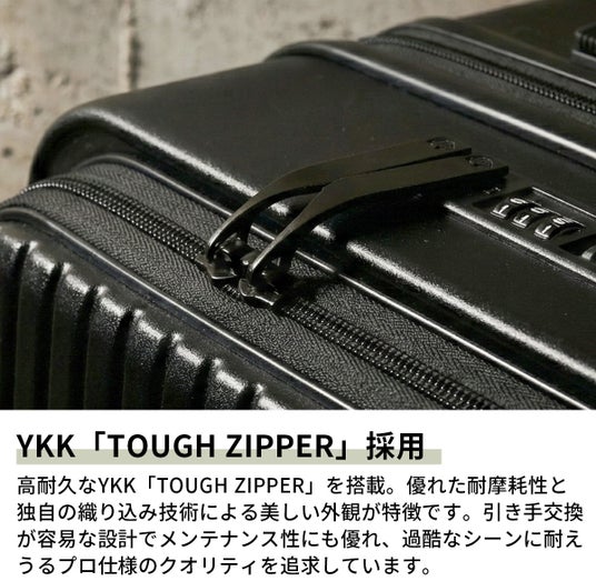 MILスペックを想起させる直線的なデザインと、無駄のない構造のキャリーケース。