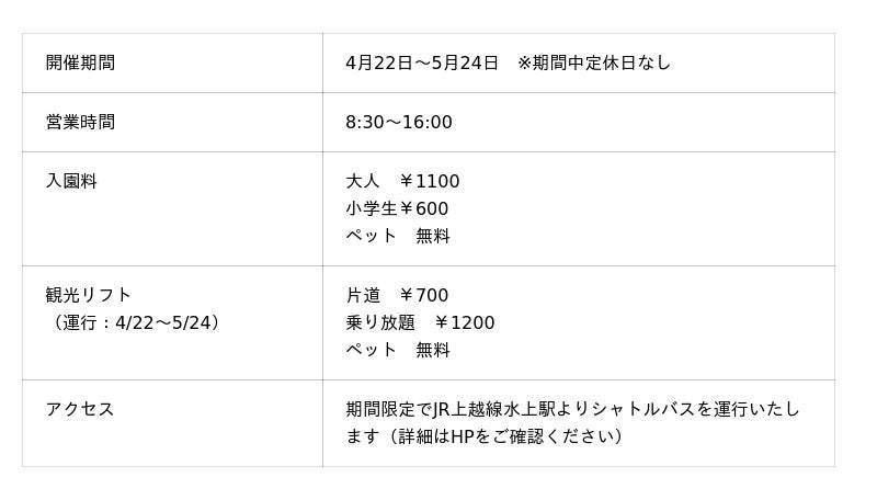 期間限定運行のリフト:4月22日~5月24日