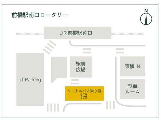 JR前橋駅南口ロータリーとぐんまフラワーパークプラスを約40分で結ぶ、予約不要・無料でご利用いただける直行バスです 。